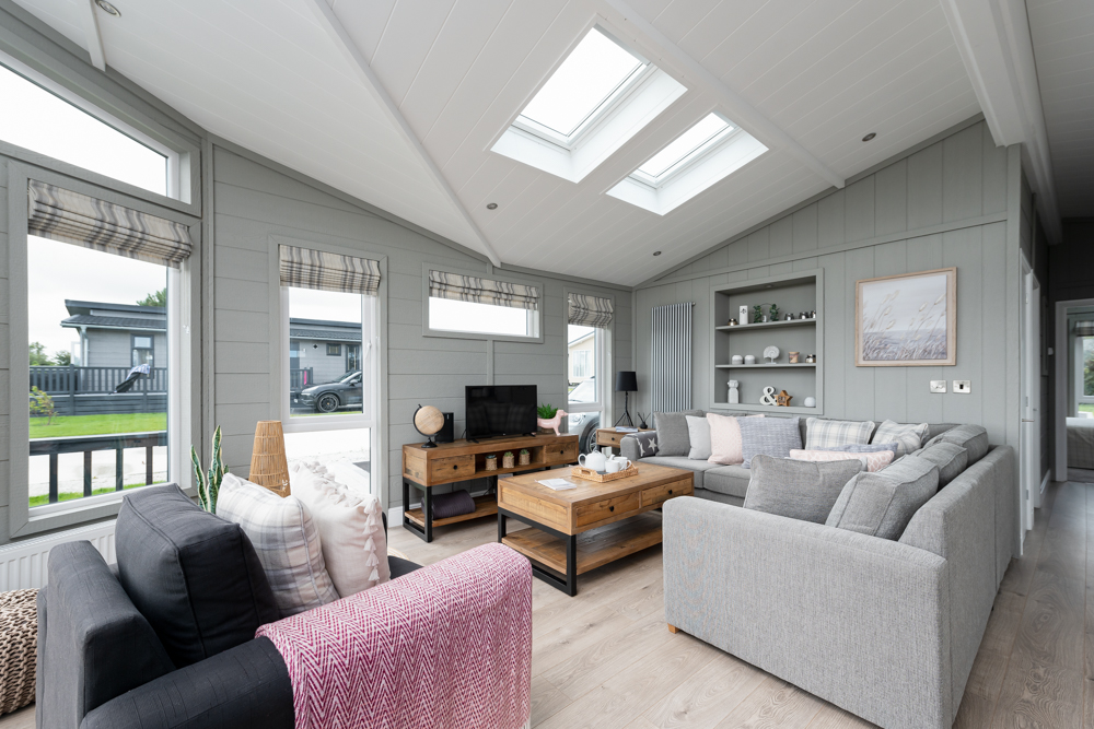 - Bright open plan lounge with vaulted ceilings and views over the countryside from the large decking area.